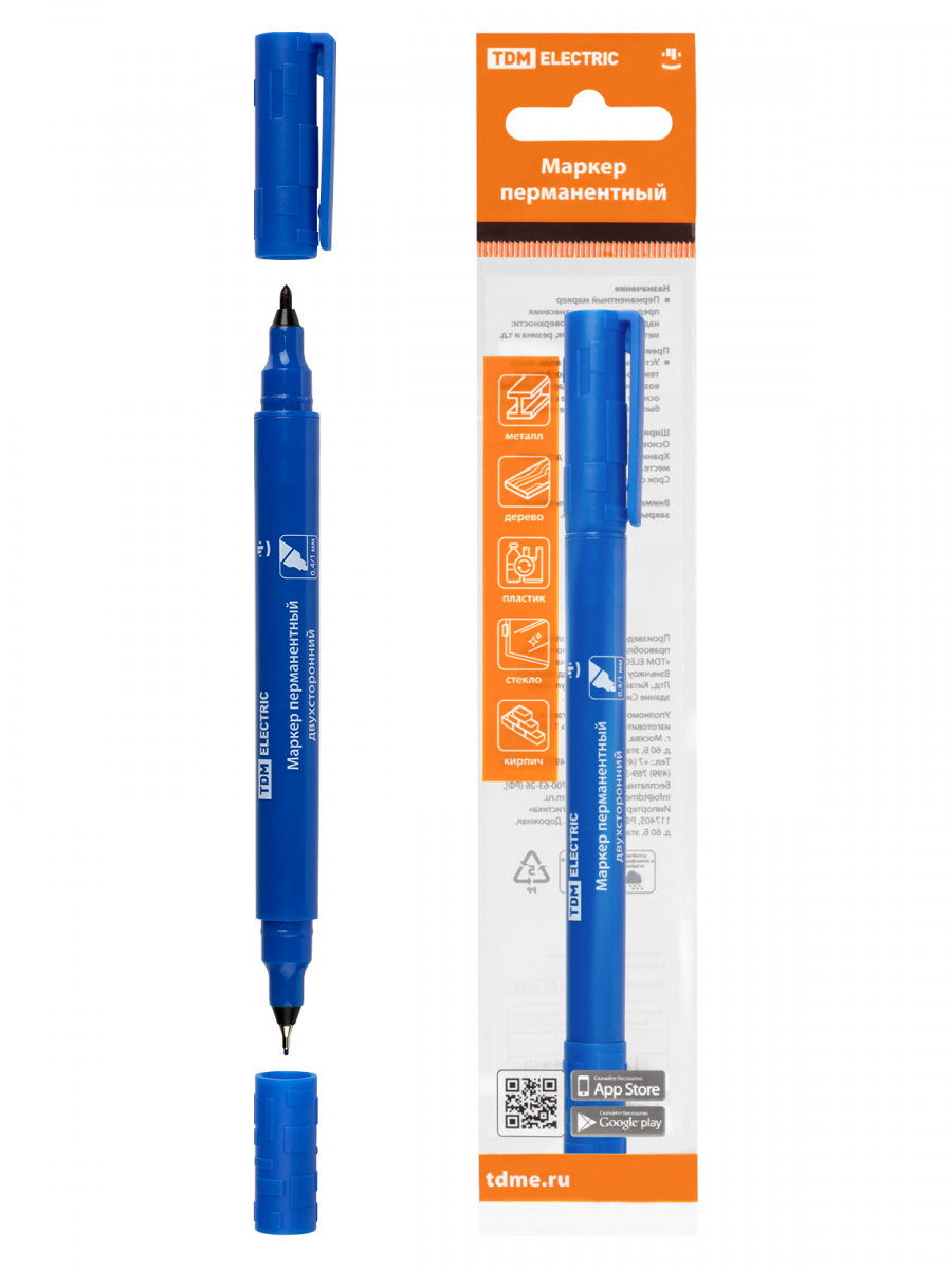 - Маркер перманентный двухсторонний 0,4/1 мм, синий (пакет) круглый наконечник TDM (10/600) (SQ0594-0114)