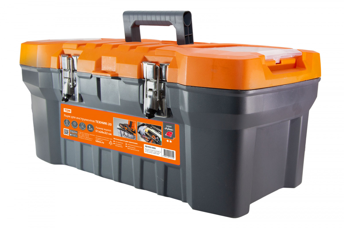 - Ящик для инструментов ТЕХНИК-20, 51х26х22 см, метал. замки, лоток, два органайзера, «Рубин» TDM (1/6) (SQ1032-0202)