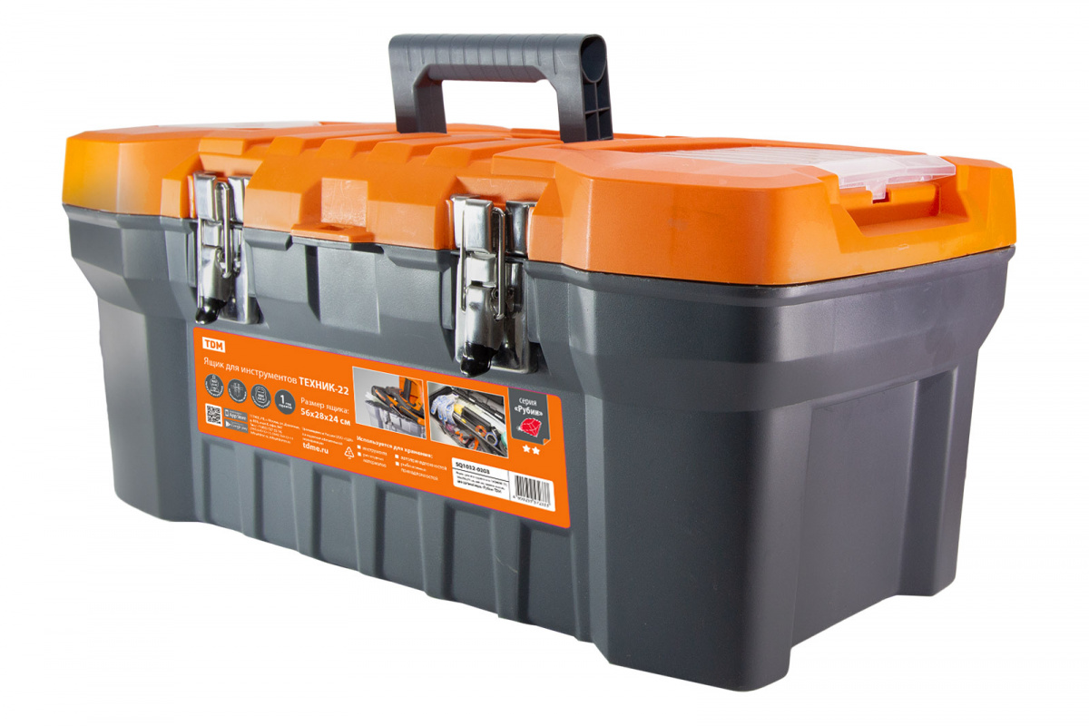 - Ящик для инструментов ТЕХНИК-22, 56х28х24 см, метал. замки, лоток, два органайзера, «Рубин» TDM (1/6) (SQ1032-0203)