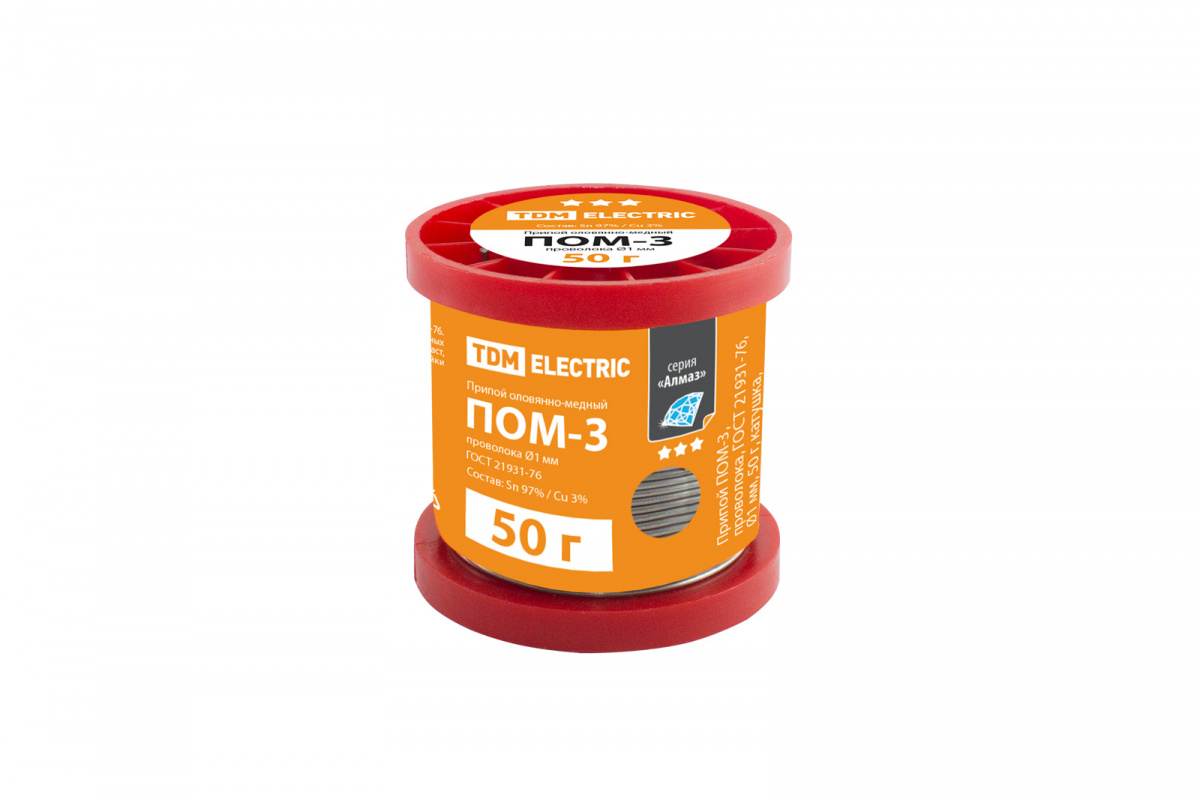- Припой ПОМ-3, проволока, ГОСТ 21931-76, Ø1 мм, 50 г, катушка, серия "Алмаз" TDM (1/10/80) (SQ1025-0340)