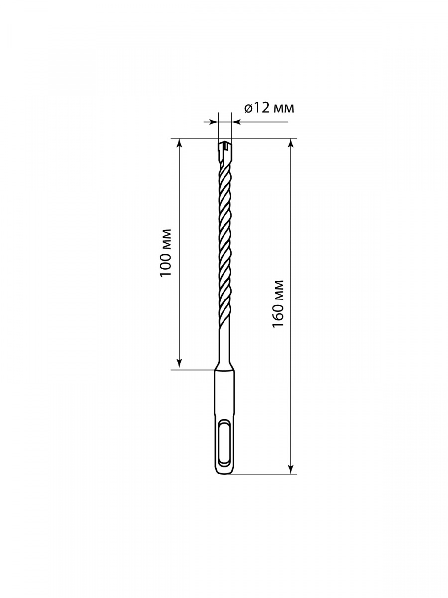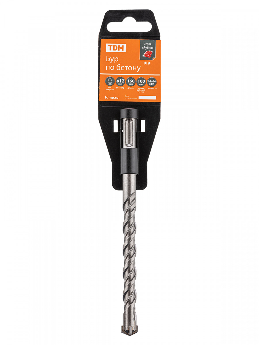 - Бур по бетону, 12×160×100 мм, SDS-Plus, 4 резца, пластиковый держатель, 1 шт, "Рубин" TDM (1/100) (SQ1094-0209)