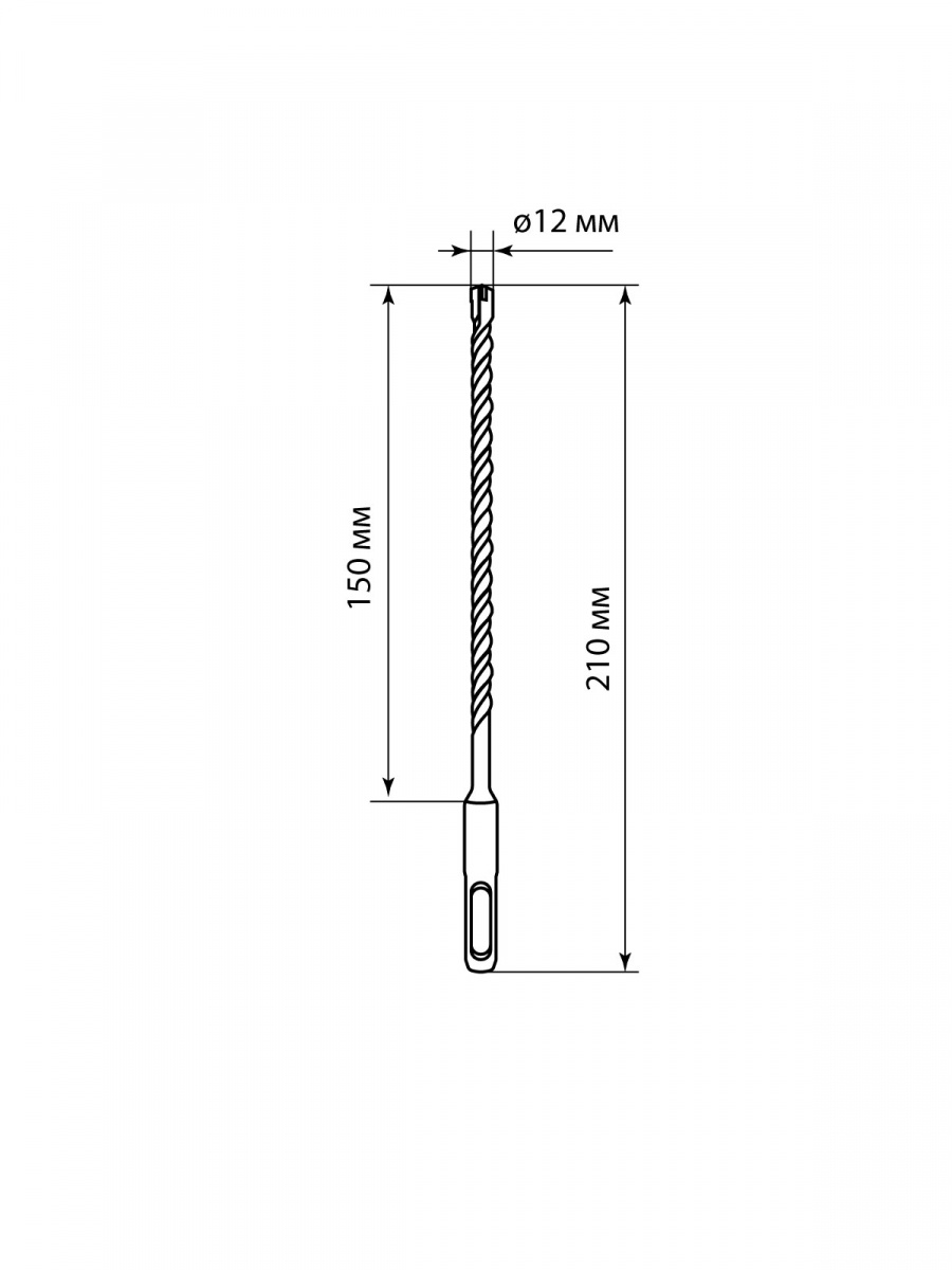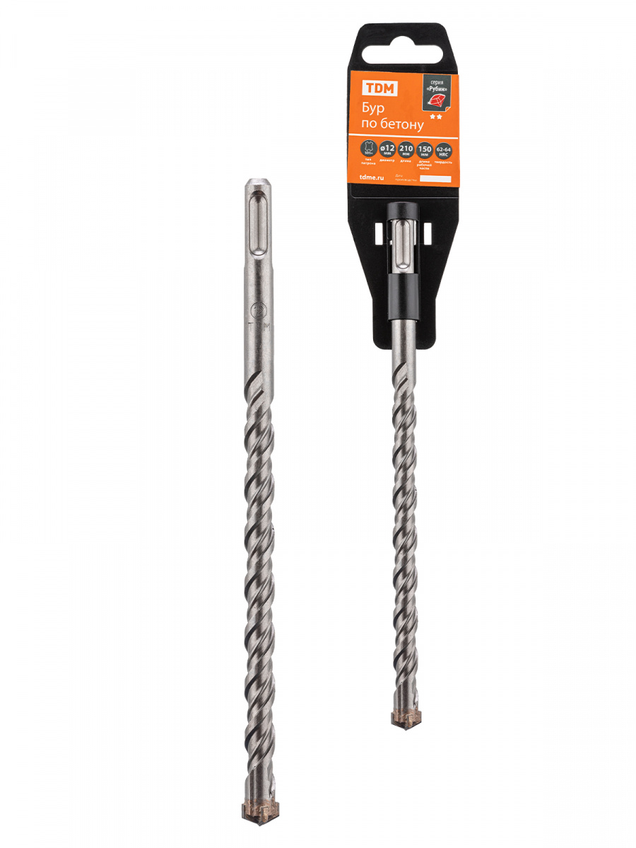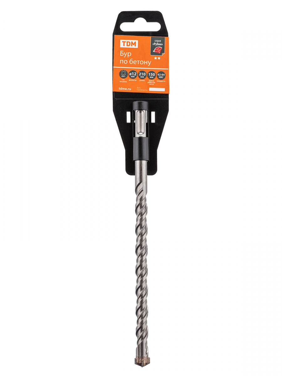 - Бур по бетону, 12×210×150 мм, SDS-Plus, 4 резца, пластиковый держатель, 1 шт, "Рубин" TDM (1/100) (SQ1094-0210)