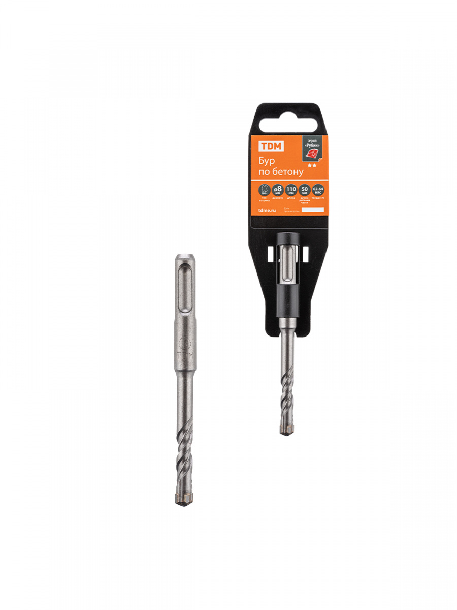 - Бур по бетону, 8×110×50 мм, SDS-Plus, 4 резца, пластиковый держатель, 1 шт, "Рубин" TDM (1/200) (SQ1094-0204)