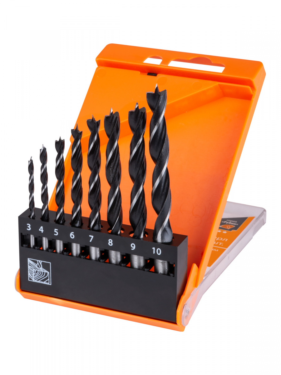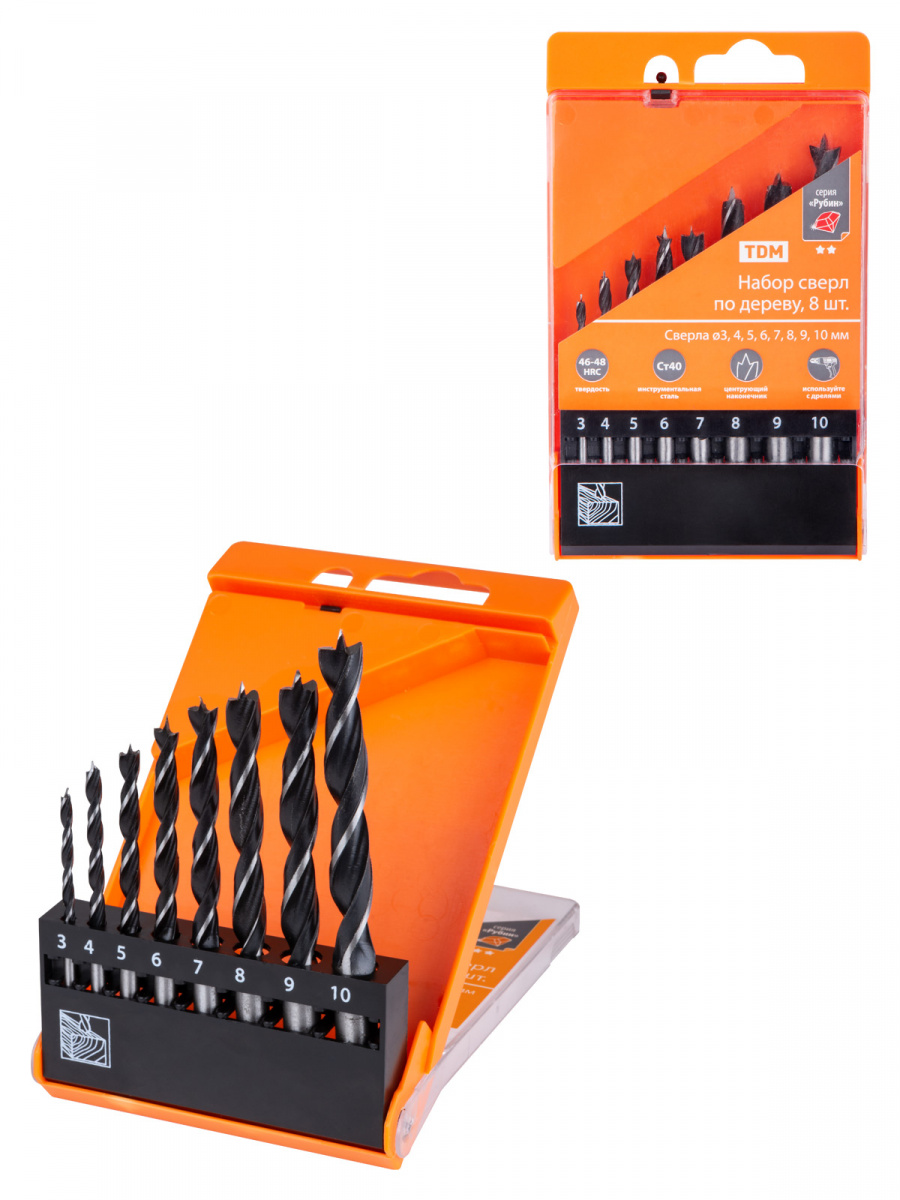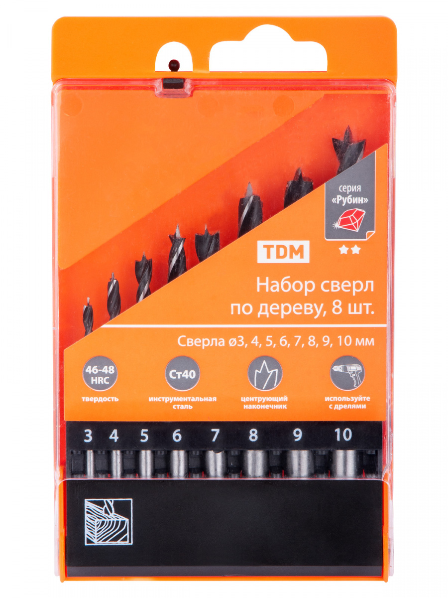 - Набор сверл по дереву, 8 шт. (3-4-5-6-7-8-9-10) мм, полир., HSS, пласт. уп., "Рубин" TDM (1/60) (SQ1093-0202)