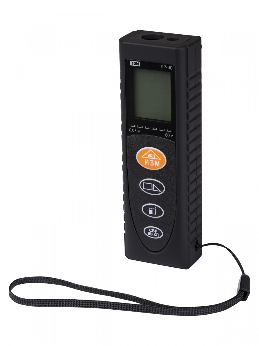 - Рулетка лазерная (дальномер) ЛР-60, дальность 60 м, точность 2 мм, подсветка, IP54, 2хAAA, “Алмаз” TDM (SQ1018-0202)
