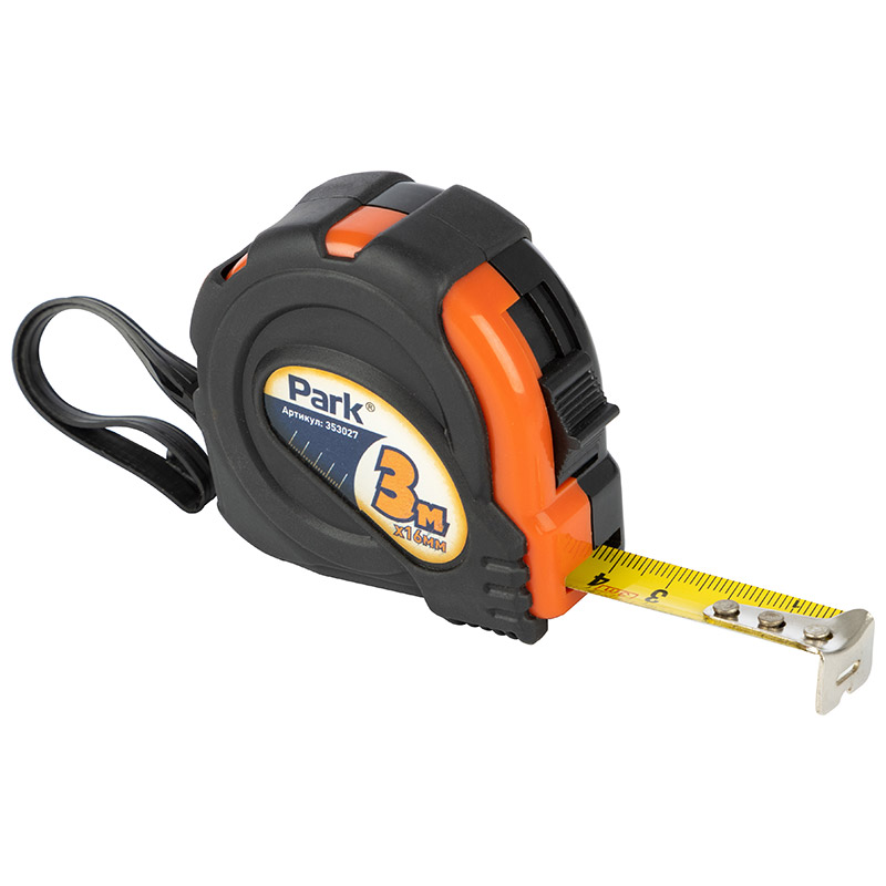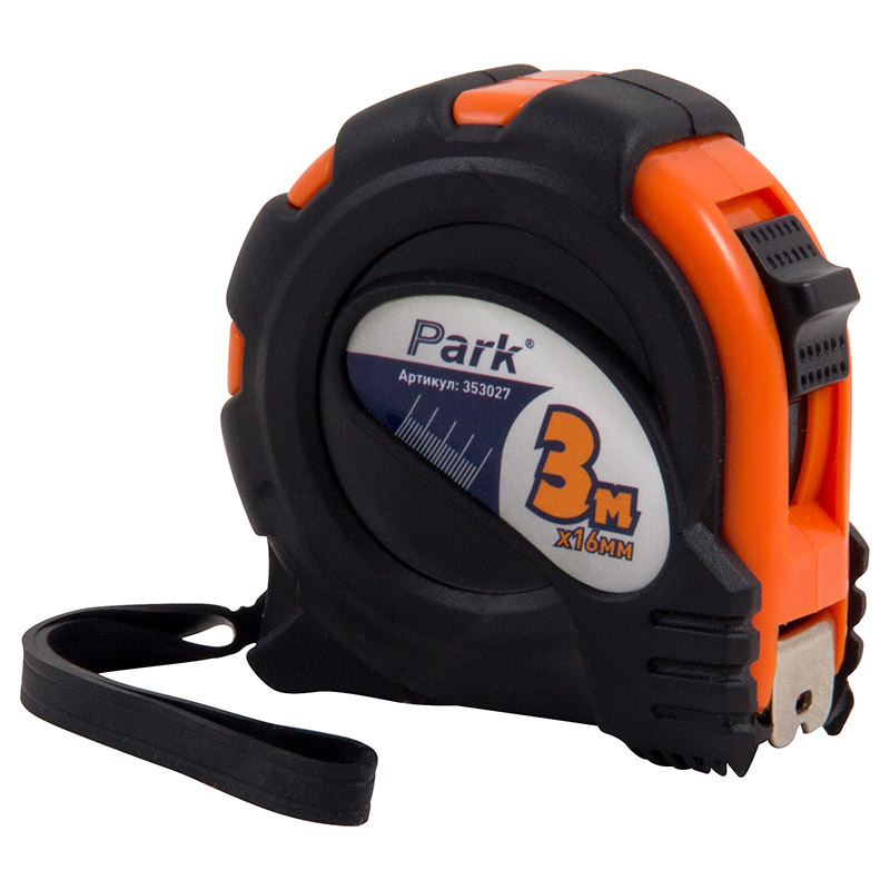- Рулетка Park с фиксатором, прорезиненный корпус, 3мx16мм TM27-3016 (1/12/120) (353027)