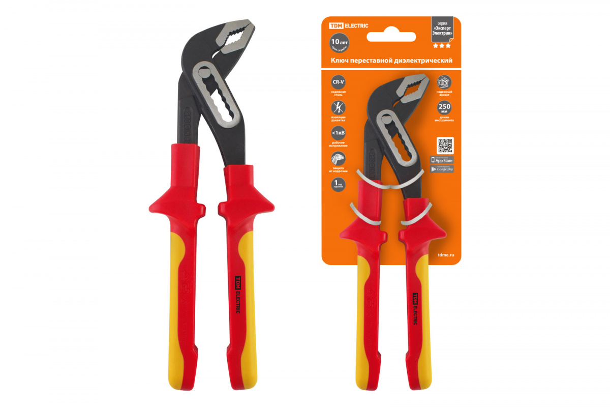 - Ключ переставной диэлектрический, 250 мм, 1000 В, CR-V, «ЭкспертЭлектрик» TDM (1/6/30) (SQ1010-0109)