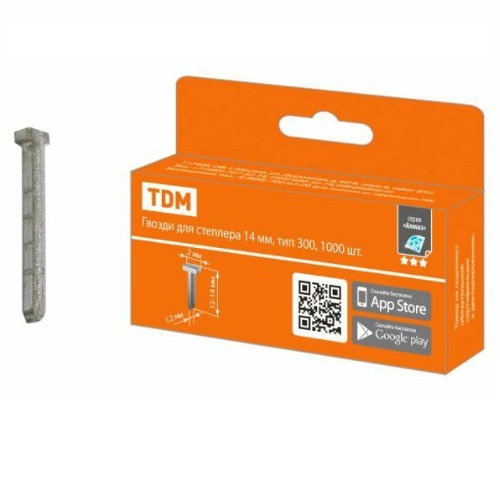 - Гвозди (скобы Т-образные) TDM для степлера 14 мм, тип 300, 1000 шт, "Алмаз"(1/10/100) (SQ1038-0401)