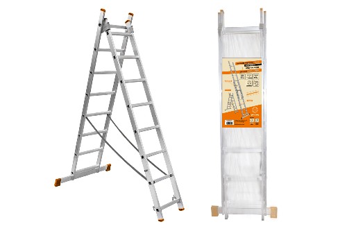 - Лестница алюминиевая TDM ЛА2х7, 2х секционная х 7 ступеней, h=2880 мм, Народная (SQ1028-0201)