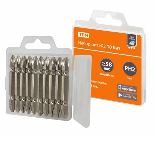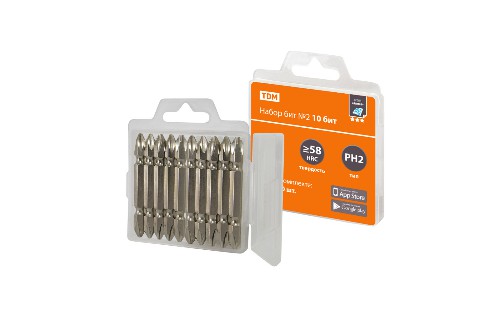 - Набор бит TDM №2, 10 бит: PH 2x10, сталь S2 в пластиковом держателе, «Алмаз» (1/20/80) (SQ1019-0102)