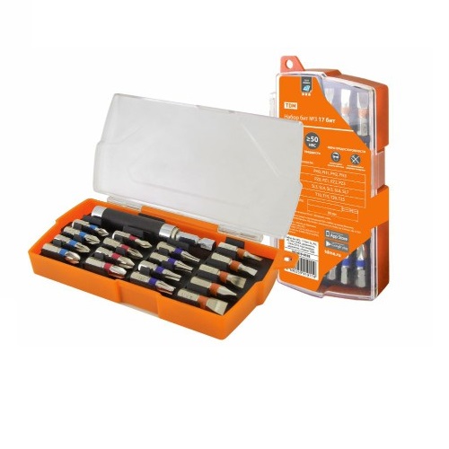 - Набор бит TDM №3, 17 бит: SL,PH ,PZ ,HEX,TORX,удлин-ль,сталь CR-V,пласт.держ.,«Алмаз» (1/10/80) (SQ1019-0103)