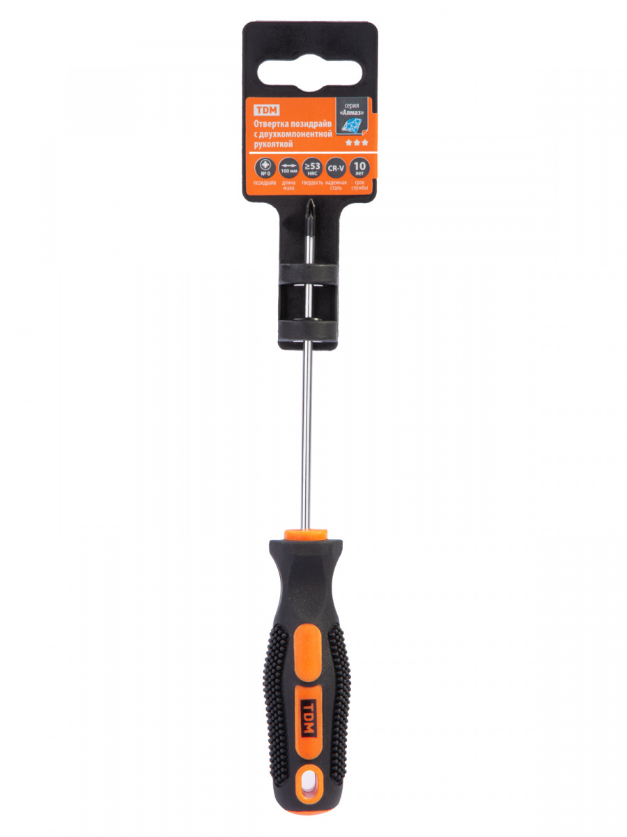 - Отвертка позидрайв двухкомпонентная CR-V тип PZ 0x100 серия "Алмаз" TDM (1/12/144) (SQ1006-1202)