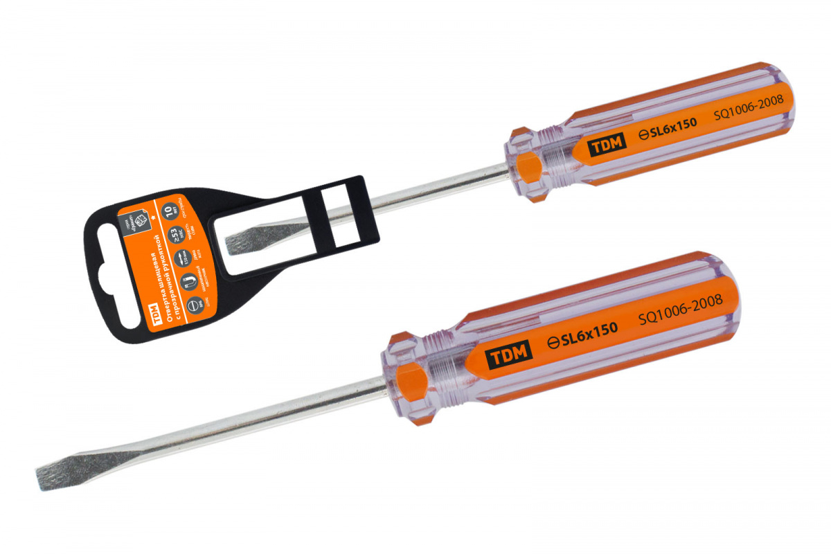 - Отвертка шлицевая прозрачная рукоятка углеродистая сталь тип SL 6.0x150 мм серия "Гранит" TDM (1/12/120) (SQ1006-2008)