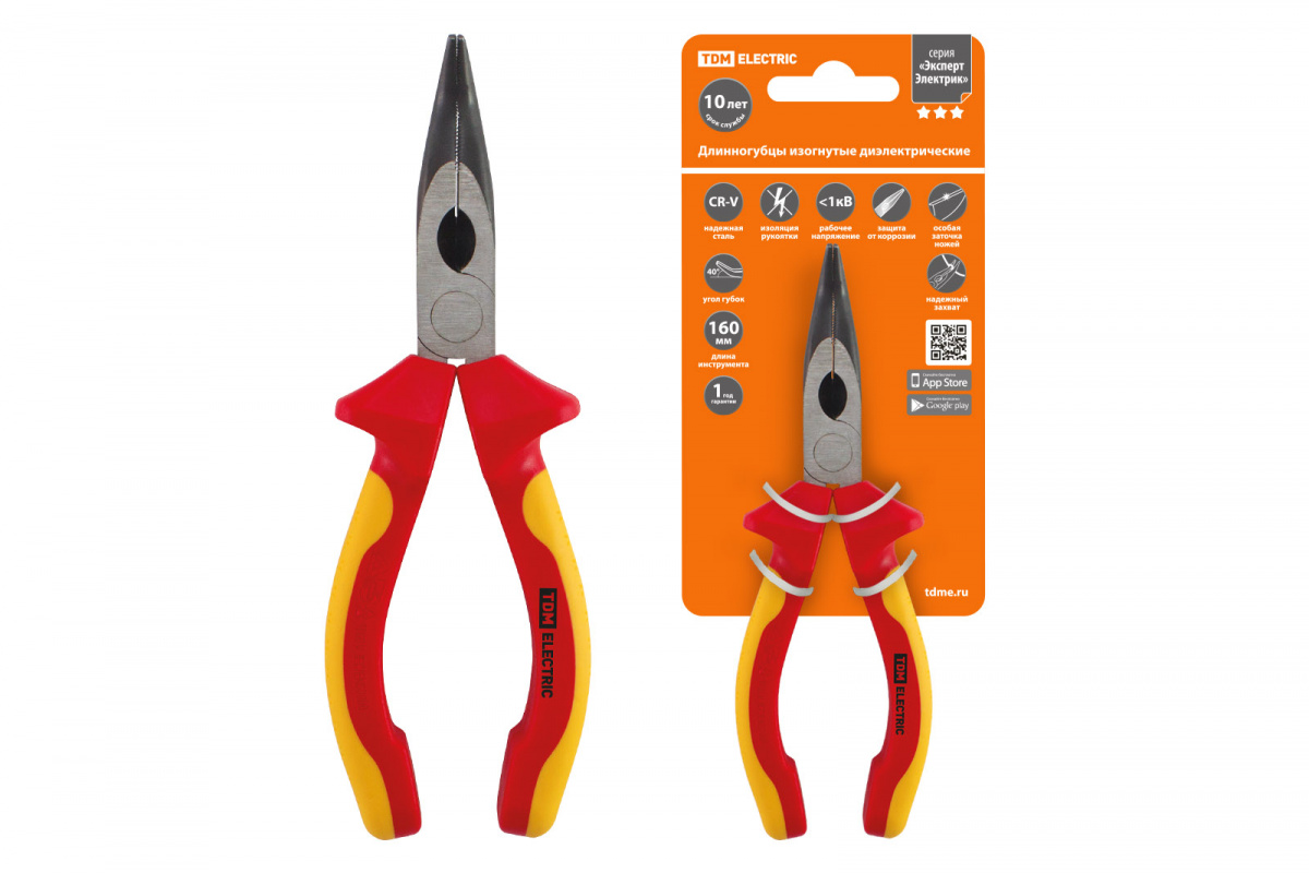 - Длинногубцы изогнутые диэлектрические, 160 мм, 1000 В, CR-V, «ЭкспертЭлектрик» TDM (1/6/60) (SQ1010-0107)