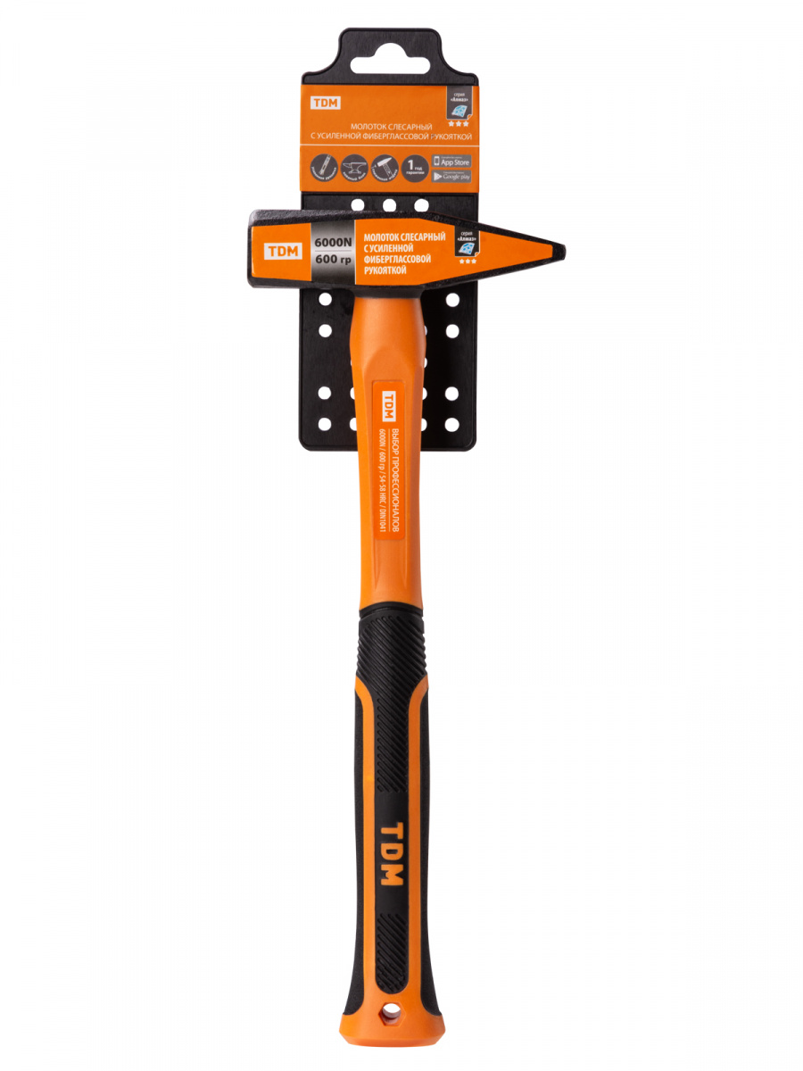 - Молоток слесарный, 600 гр, кованый, с усилен. прорезиненной фиберглассовой рукояткой "Алмаз" TDM (1/1/18) (SQ1036-0114)