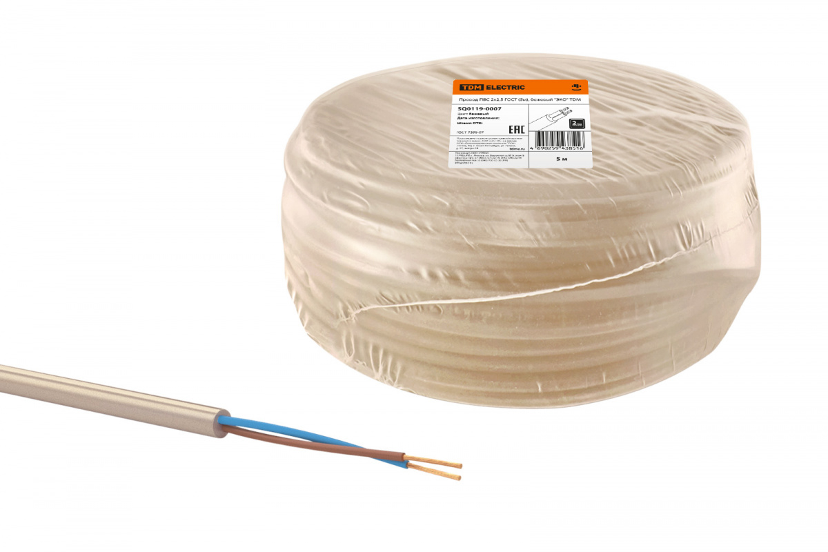 - Провод TDM ПВС 2х2,5 ГОСТ (5м), бежевый "ЭКО" (1/5/40) (SQ0119-0007)