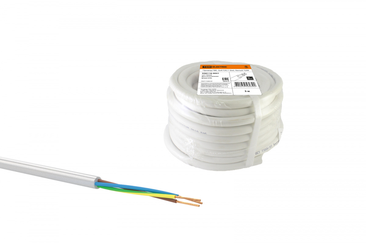 - Провод TDM ПВС 3х4 ГОСТ (5м), белый (1/5/5) (SQ0118-0051)