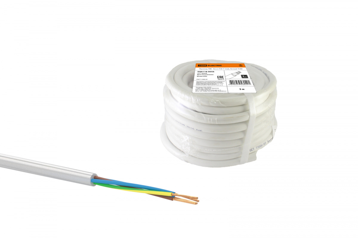 - Провод TDM ПВС 4х2,5 ГОСТ (5м), белый (1/5/5) (SQ0118-0056)