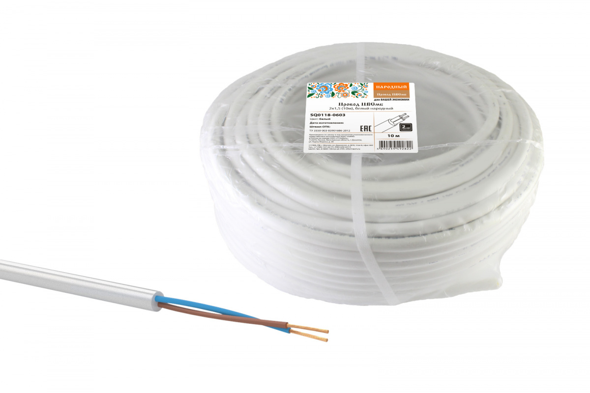 - Провод НАРОДНЫЙ ПВСмб 2х1,5 (10м), белый (10/100) (SQ0118-0603)