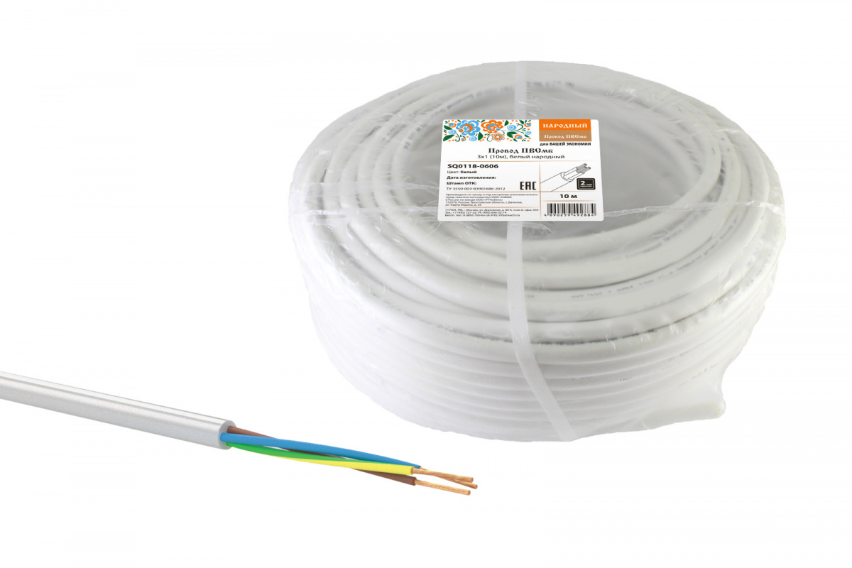 - Провод НАРОДНЫЙ ПВСмб 3х1 (10м), белый (1/100/100) (SQ0118-0606)