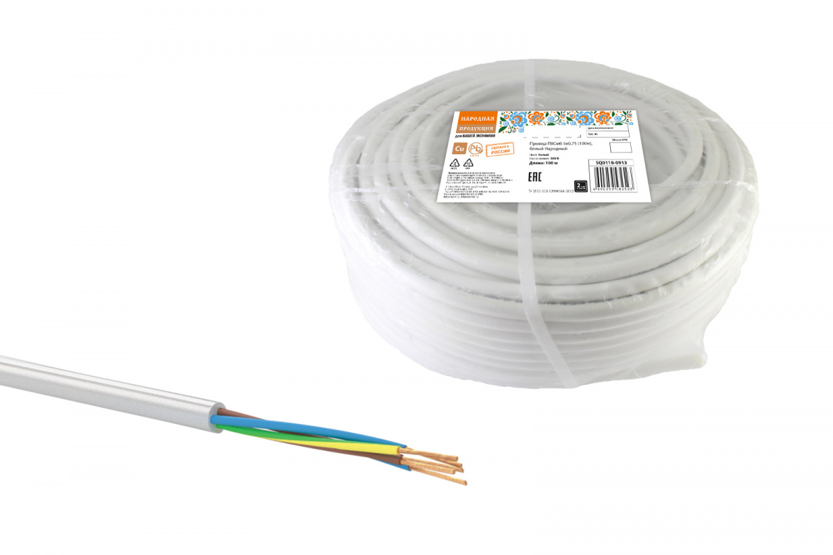 - Провод НАРОДНЫЙ ПВСмб 5х0,75 (100м), белый (SQ0118-0913)
