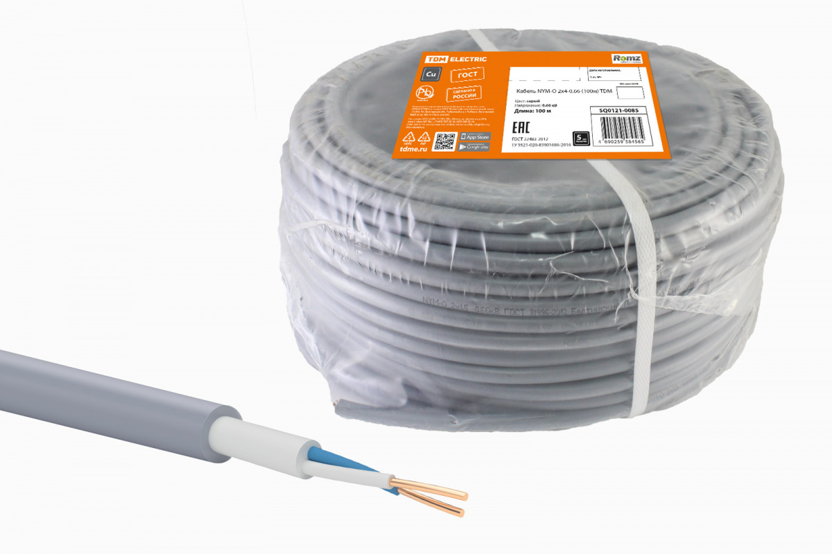 - Кабель TDM NYM-O 2х4-0,66 (100м) (SQ0121-0085)