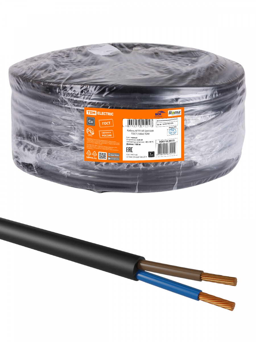 - Кабель TDM КГТП-ХЛ 2х4-0,66 ГОСТ (100м) (SQ0110-0013)