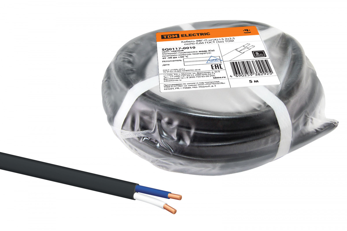 - Кабель TDM ВВГ-Пнг(А)-LS 2х2,5 ок(N)-0,66 ГОСТ (5м) (1/50/50) (SQ0117-0010)