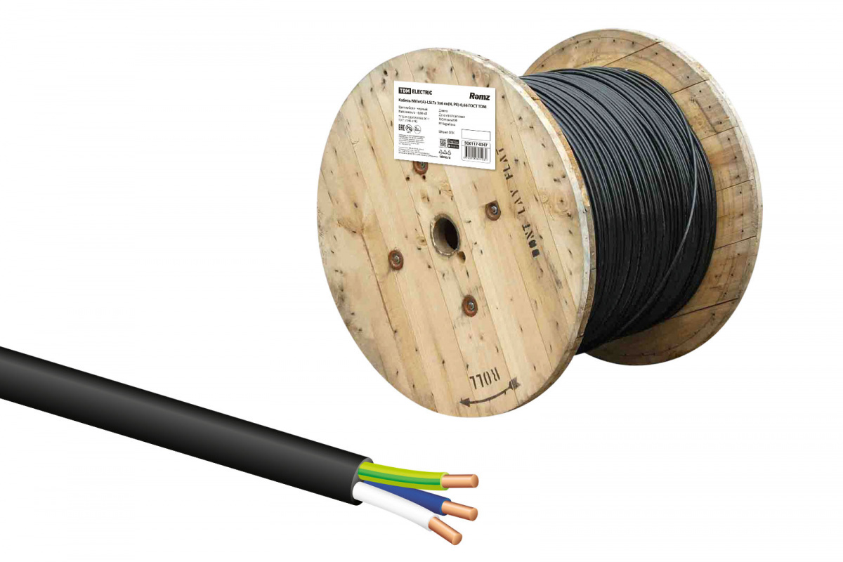 - Кабель TDM ВВГнг(А)-LSLTx 3х6 ок(N, PE)-0,66 ГОСТ (1/1) (SQ0117-0347)