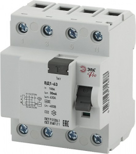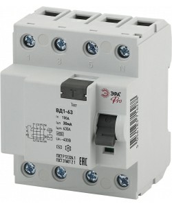 - Устройство защитного отключения ЭРА PRO NO-902-53 УЗО ВД1-63 3P+N 100А 30мА (1/45/945) (Б0031892)