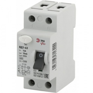 - Устройство защитного отключения ЭРА PRO NO-902-65 УЗО ВД1-63 1P+N 16А 10мА (1/90/1620) (Б0031904)