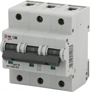 - Автоматический выключатель ЭРА PRO NO-901-31 ВА47-100 3P 100А кривая C 10кА (1/4/40) (Б0031792)