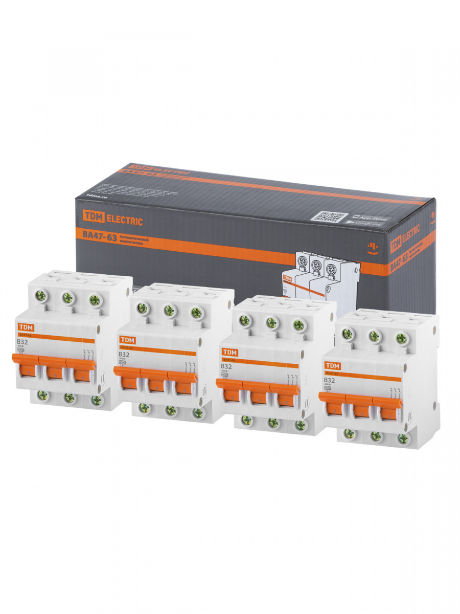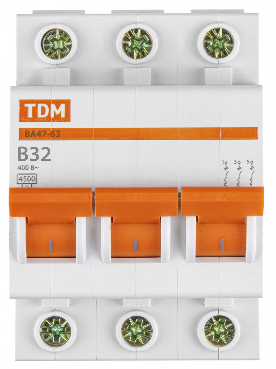 - Автоматический выключатель ВА47-63 3Р 32А 4,5кА х-ка B TDM (1/4/40) (SQ0218-0058)