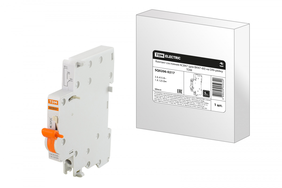 - Контакт состояния КСВ47 (для ВА47-60) на DIN-рейку TDM (1/60) (SQ0206-0217)
