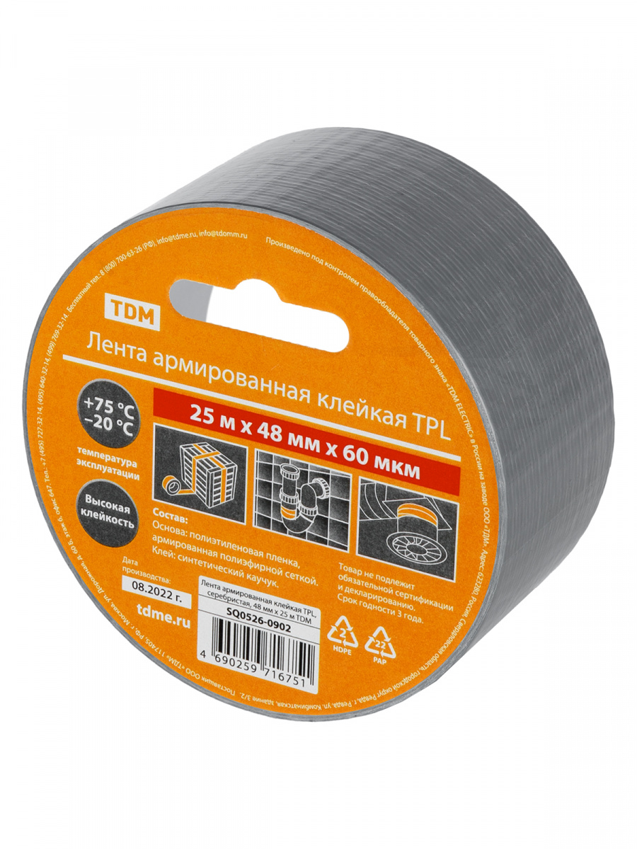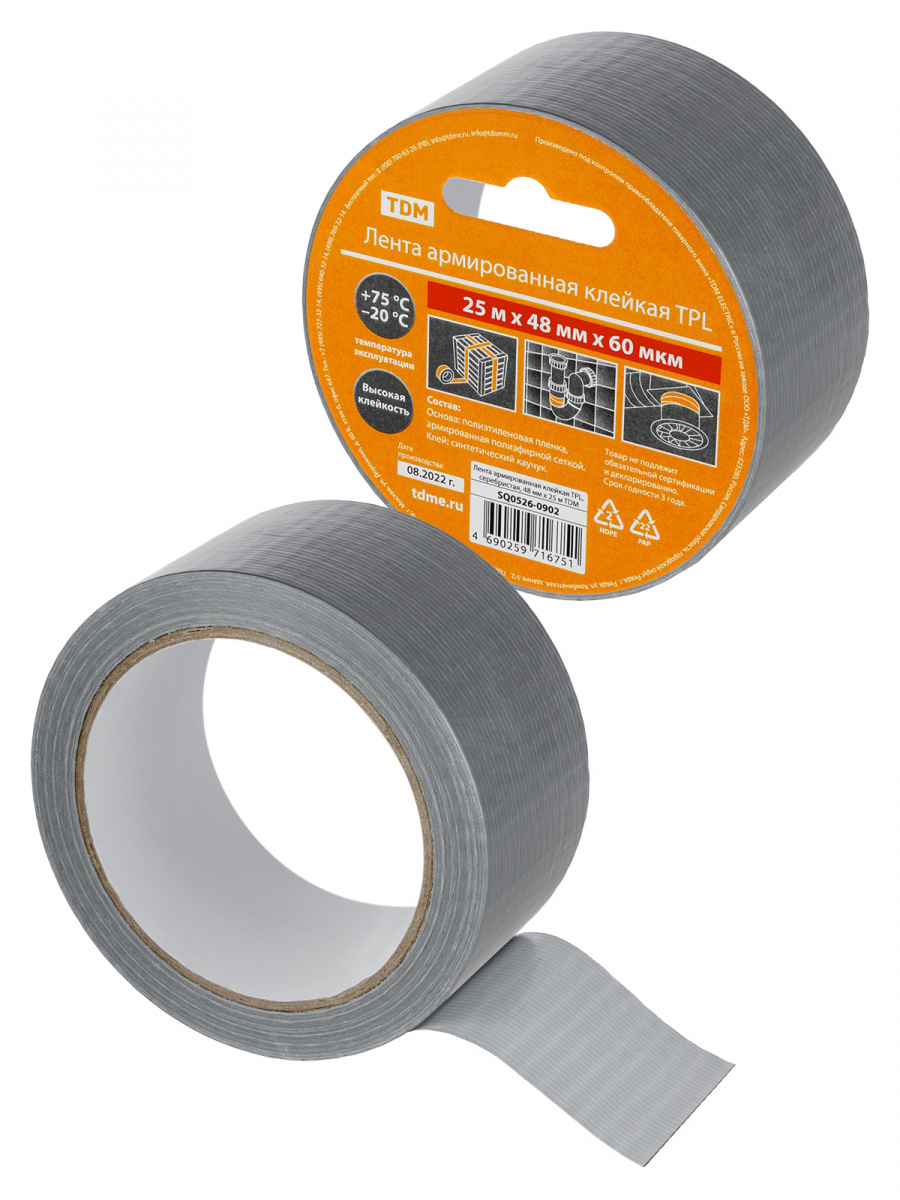 - Лента армированная клейкая TPL, серебристая, 48 мм х 25 м TDM (1/24) (SQ0526-0902)