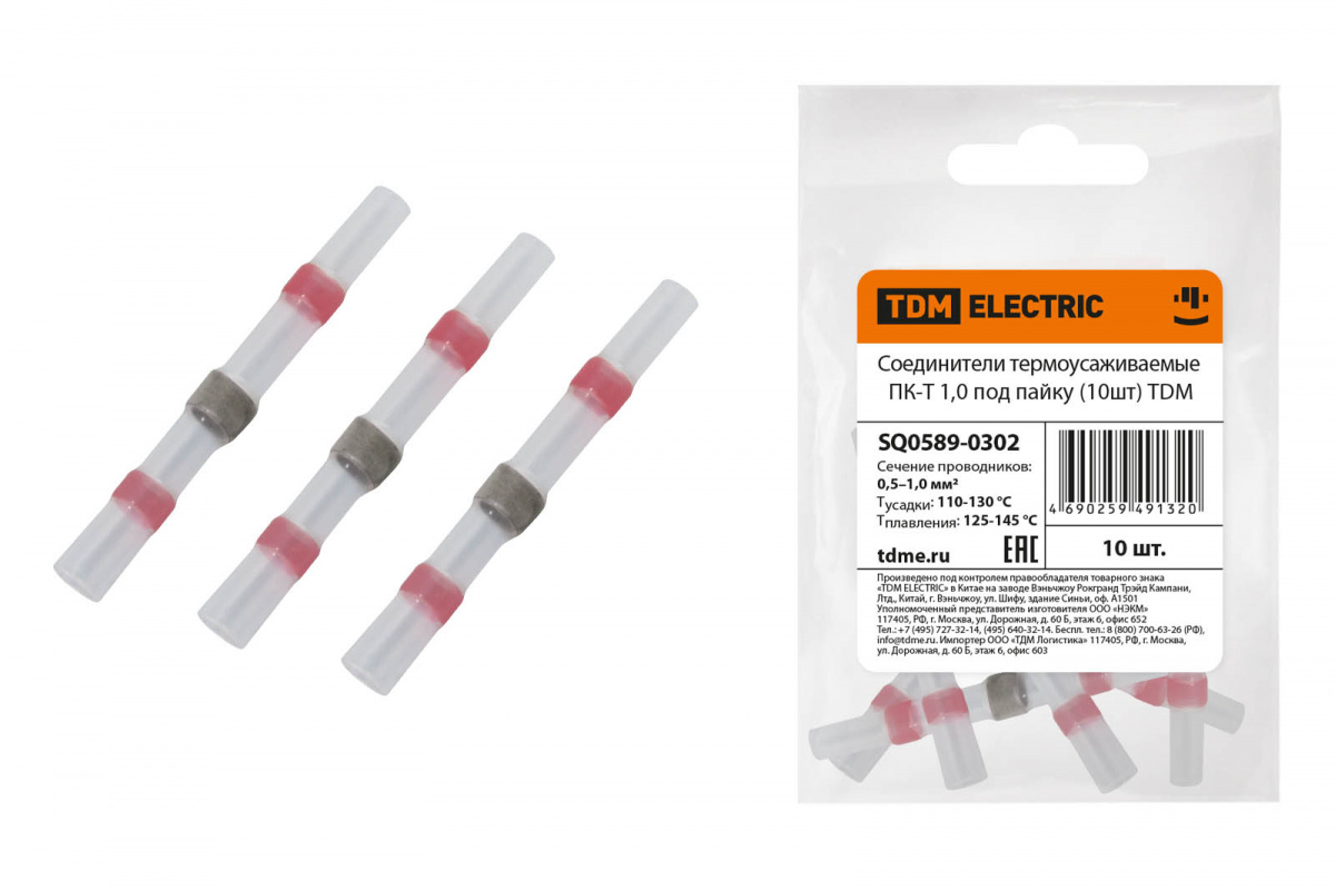 - Соединители термоусаживаемые ПК-Т 1,0 под пайку (10шт) TDM (1/10/500) (SQ0589-0302)