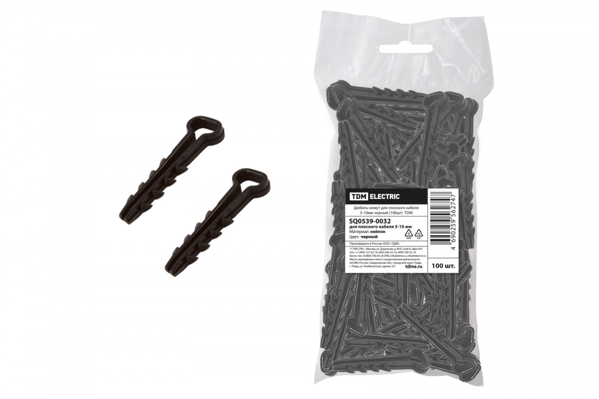 - Дюбель-хомут для плоского кабеля 5-10мм черный (100шт) TDM (1/10/100) (SQ0539-0032)