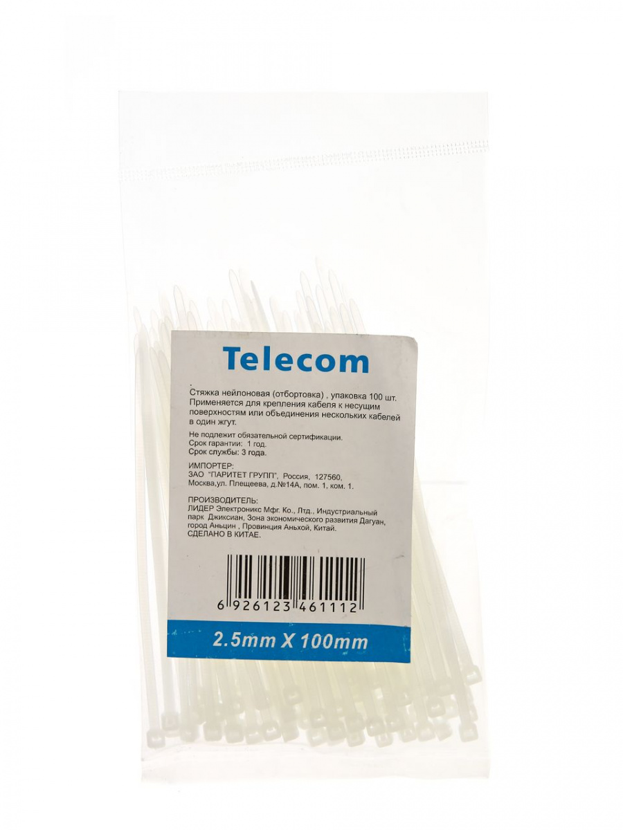 - Cтяжка-хомут (нейлон) 2.5 х 100 мм. (100шт./уп.), белая (цена за упаковку-100 шт!!!) (TIE2.5X100MM-W)