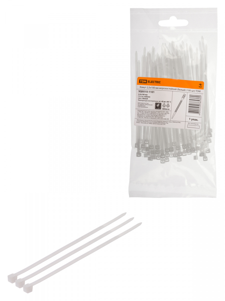 - Хомут 2,5х100мм морозостойкий (белый) (100шт) TDM (1/260) (SQ0515-1101)