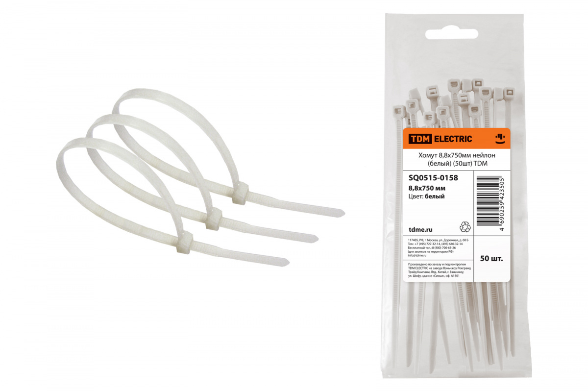 - Хомут 8,8х750мм нейлон (белый) (50шт) TDM (1/30/24) (SQ0515-0158)