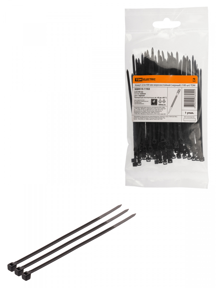 - Хомут 2,5х100мм морозостойкий (черный) (100шт) TDM (1/260) (SQ0515-1102)