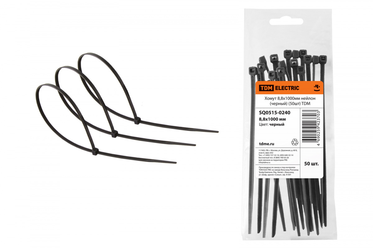 - Хомут 8,8х1000мм нейлон (черный) (50шт) TDM (1/16) (SQ0515-0240)