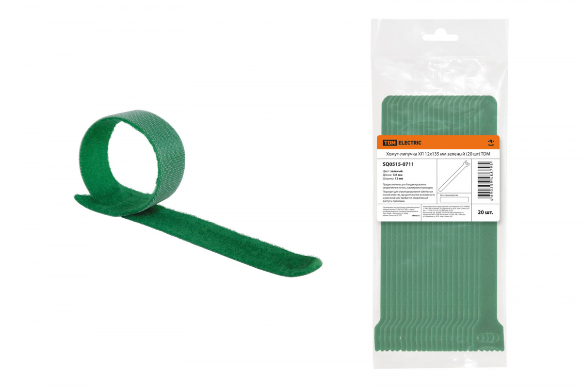 - Хомут-липучка ХЛ 12х135 мм зеленый (20 шт) TDM (1/10/200) (SQ0515-0711)