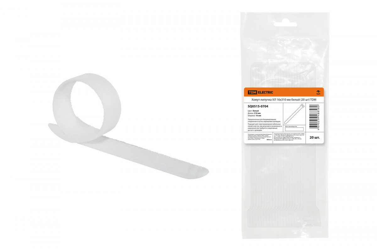 - Хомут-липучка ХЛ 16х310 мм белый (20 шт) TDM (1/10/100) (SQ0515-0704)