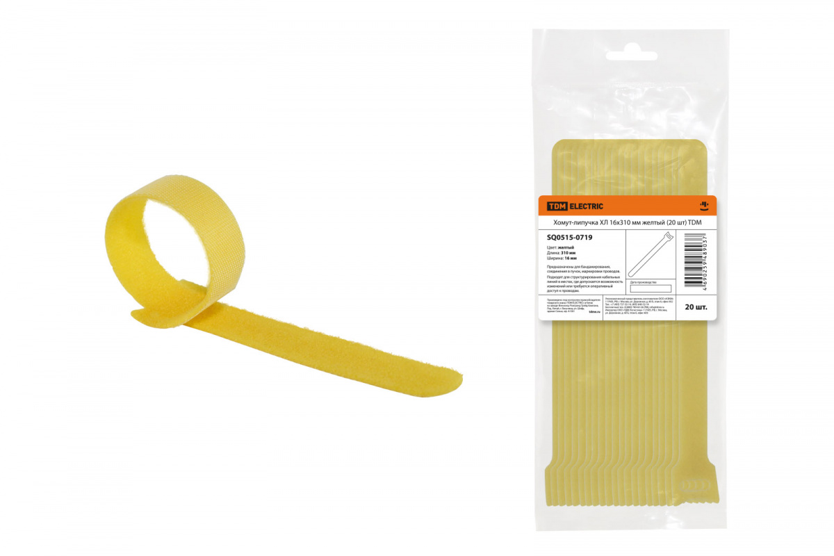 - Хомут-липучка ХЛ 16х310 мм желтый (20 шт) TDM (1/10/100) (SQ0515-0719)