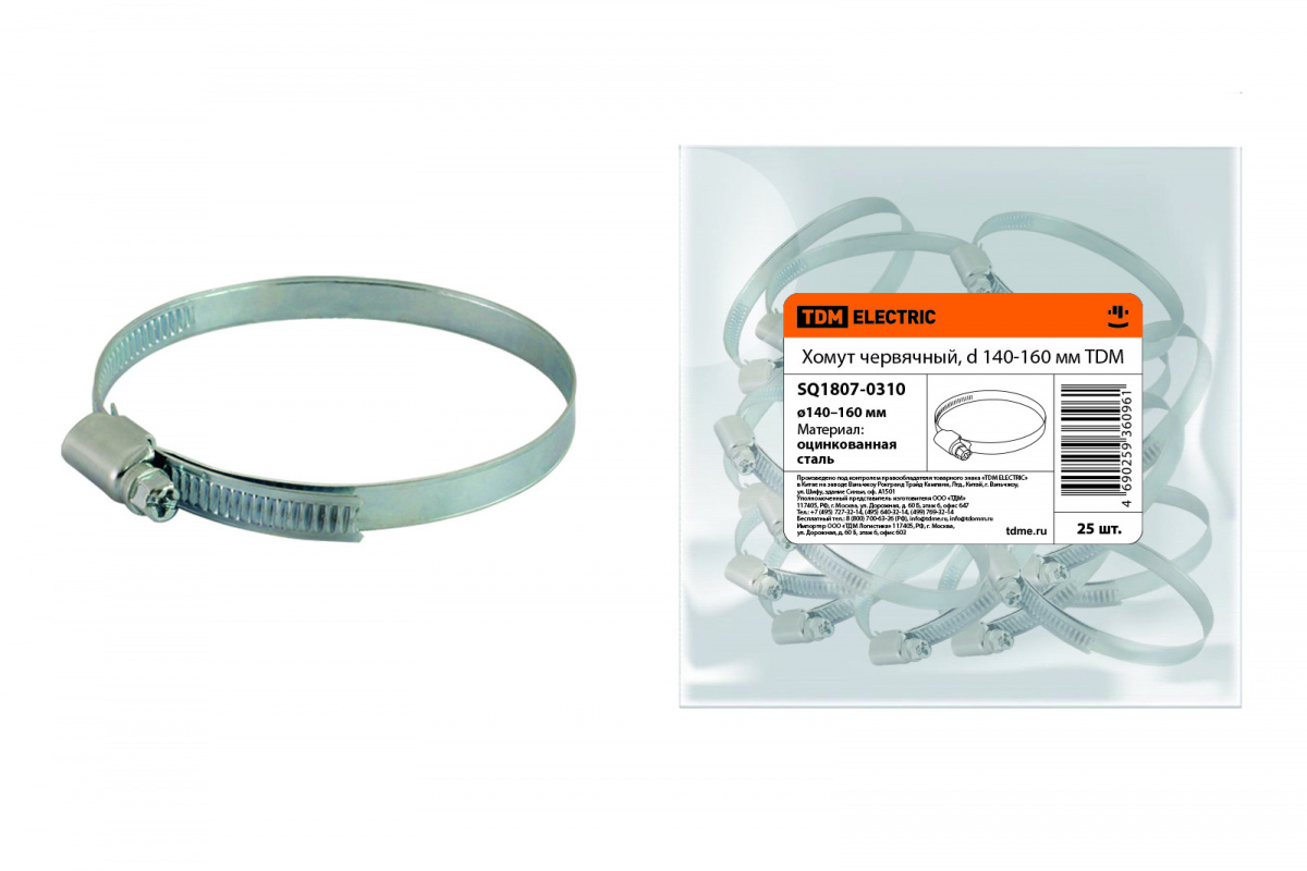 - Хомут червячный, d 140-160 мм TDM (1/25/200) (SQ1807-0310)