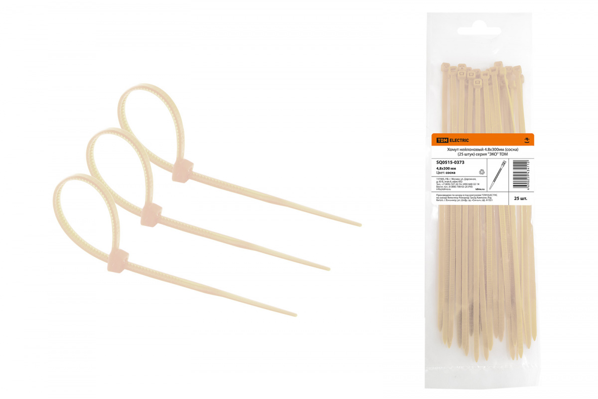 - Хомут нейлоновый 4.8х300мм (сосна) (25 штук) серия "ЭКО" TDM (1/30/210) (SQ0515-0373)