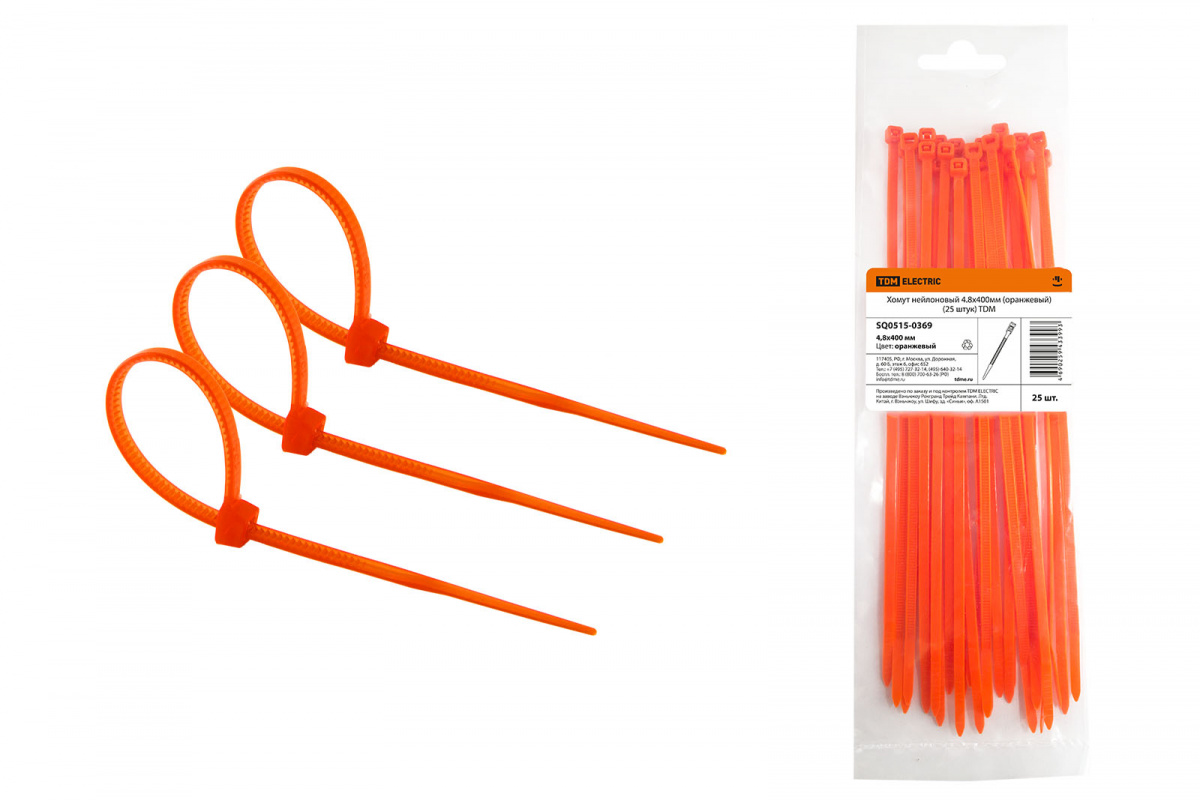 - Хомут нейлоновый 4.8х400мм (оранжевый) (25 штук) TDM (1/20/140) (SQ0515-0369)