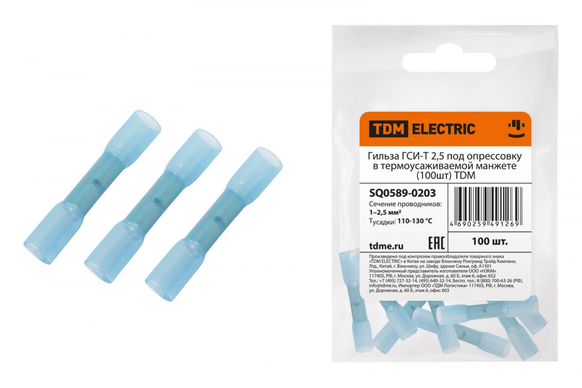 - Гильза ГСИ-Т 2,5 под опрессовку в термоусаживаемой манжете (100шт) TDM (1/3/60) (SQ0589-0203)