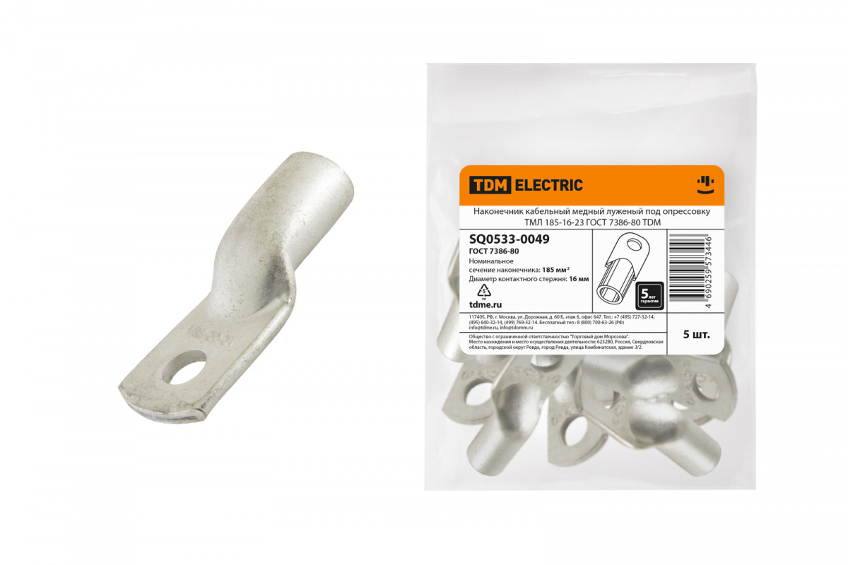 - Наконечник медный луженый ТМЛ 185-16-23 ГОСТ 7386-80 TDM (1/5/50) (SQ0533-0049)